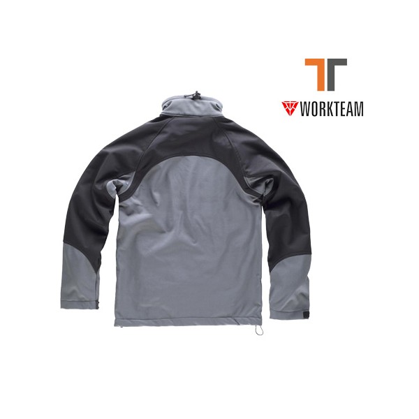 WORKTEAMS9030Chaqueta SOFTSHELL39,55 €iva no incluidoChaqueta SOFTSHELL bicolor 96% poliéster 4% elastano. 330 gr/m2. Mangas ranglan. Cuello alto y cierre de cremallera de nylon. Bocamanga ajustable con velcro. Cordón elástico en el cuello y el bajo. Tejido cortavientos, repelente al agua y resistente al desgarro. Alta capacidad térmica.
