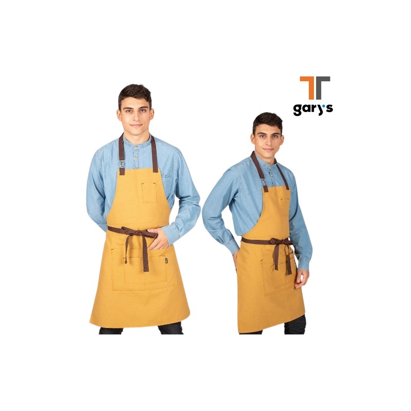 Este DELANTAL es verdaderamente único gracias a su original cierre mediante una hebilla entrelazada en el tirante del cuello.